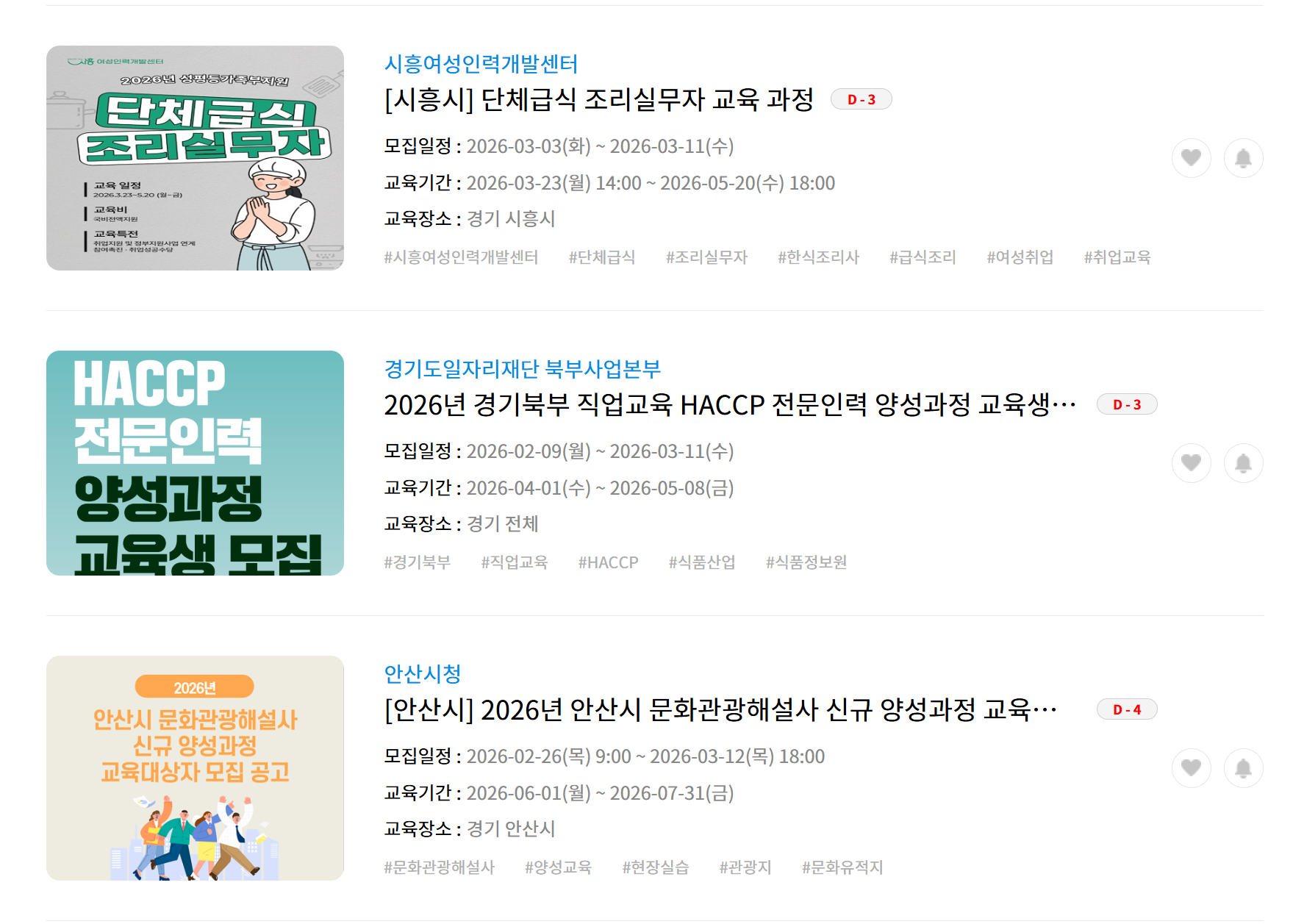 아래 사진을 보면 단체 급식 조리실무자 교육과정, 경기북부 직업교육 전문인력 얏어과정, 베이비시터 자격 취득과정, 청년 창업 스타트 교육 참여자 모집, AI 융합 코딩 교육 전문가 양성 과정 교육생 모집 등을 확인할 수 있습니다. 잡아바 > 지원정책 > 취업 교육을 통해 원하는 직무 및 취업에 대한 교육을 받을 수도 있습니다. 최근은 디자이너 실무과정 교육생, 디지털 디자인 포트폴리오 LAB 교육생 모집, SNS 마케팅 기획 프로젝트 교육생 모집 등 의 내용도 있기에 시간 있을 때 들어가서 확인해 보시는 것을 추천합니다. 내용 중에는 수강료가 전액 국비지원인 경우도 있으며, 취업 후 취업성공수당을 주는 경우도 있으니 본인 거주 시에 맞춰서 검색해 보는 것을 추천합니다.